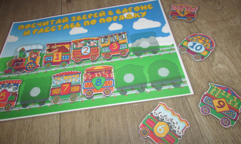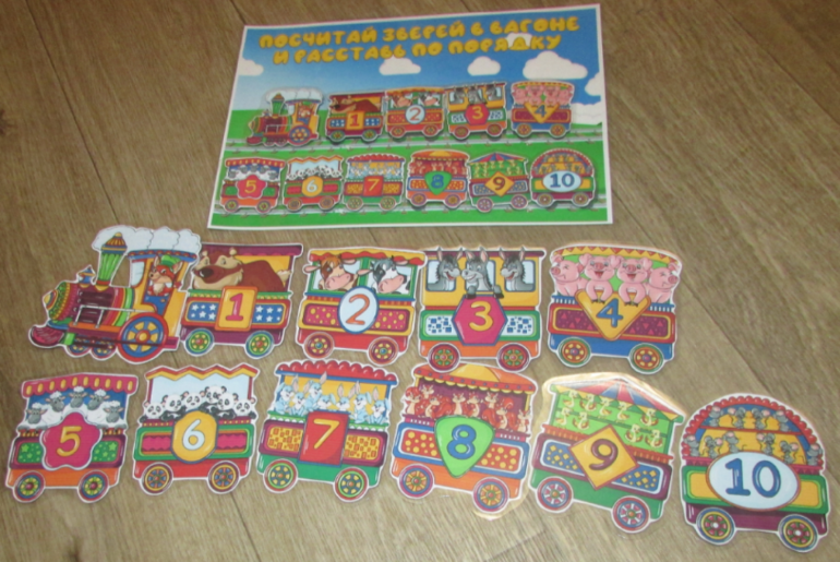 И вдобавок увеличила и распечатала вагончики. Анютка собирает их по образцу, ещё не умеет считать, но показывает пальчиками на всех по прядку,а я проговариваю счёт. Да и думаю, так и цифры зрительно начинают запоминаться в игре.😉