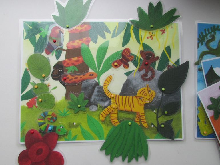 Любимые наши "Подвижные аппликации -зверюшки с кнопками" от Djeco.