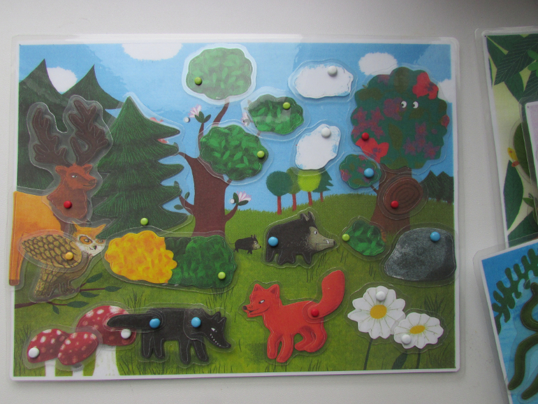 Они распечатаны, заламинированы и крепятся при помощи липучек. Муж выделили нам под эту игру кусок дсп. Играем в неё наверное уже больше года с большим удовольствием.