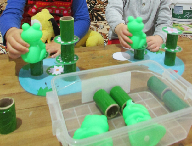 Анютка у нас абажает лягушек, книжки, игрушки, мультяшки. Поэтому не могли мы пройти мимо😆 "Лягушачего балансира" Djeco. Лягушки, правда у нас -гиганты🤣, но от этого сложнее их поставить на сваи. А сваи у нас, кстати, картонные втулки, обклеенные зелёным скотчем.🤓