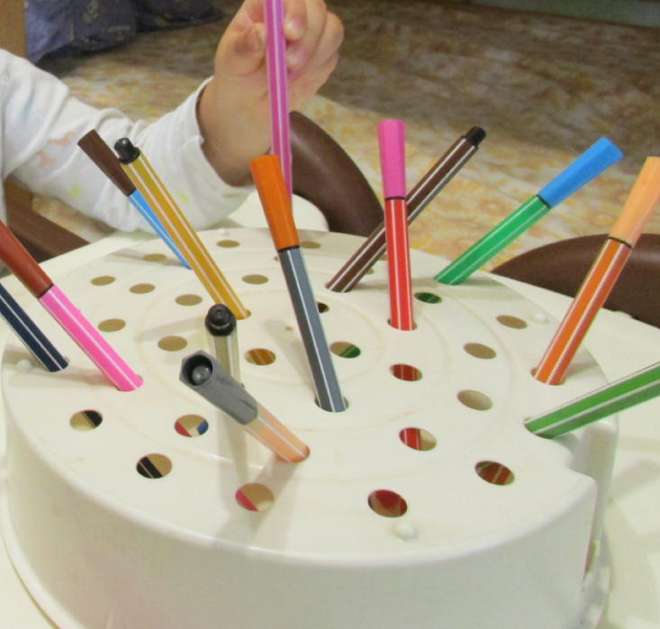 Самодельные "Ёжики" . Рисовала старшая дочь, а муж высверливал дырочки.