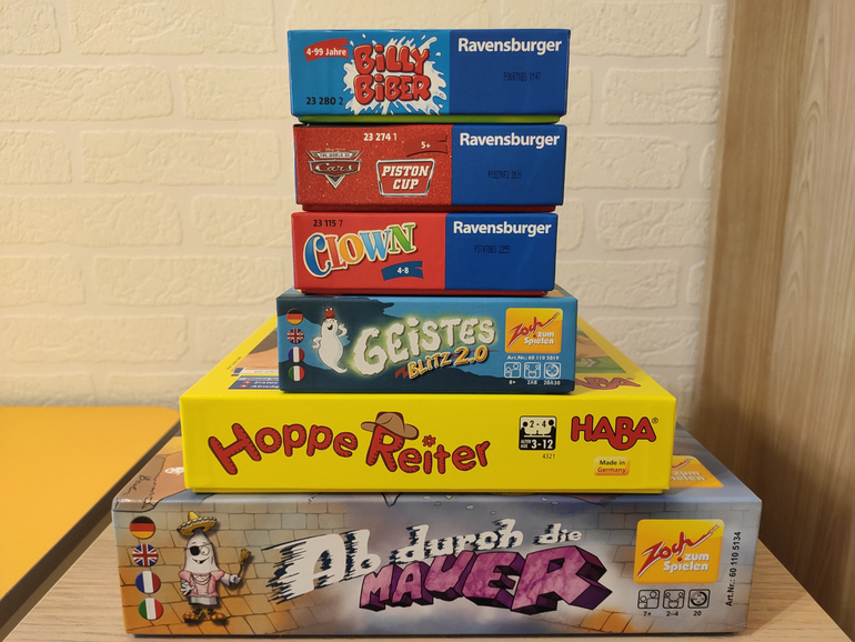 игры для малышей (дошкольников)"Всем привет, я Аня, и я алкоголик игроман" - именно так хочется начать этот пост. В конце декабря я самой себе и мужу пообещала, что до осени нам хватит всех имеющихся игр, максимум 2-3 штуки докуплю. Прошло 2 недели, меня споили, и я сорвалась, как оформила новый заказ. На самом деле действительно "виновата" моя соседка, которая делала заказ с немецкого сайта, а я "запрыгнула" в заказ, чтобы добрать до бесплатной доставки. Добрала и перебрала. Так что вы были правы в прошлом посте-хвастике, что за 9 месяцев 2-3 новыми играми ограничиться будет сложно. Но мы действительно играем, играем много, так что покупки себя оправдывают.