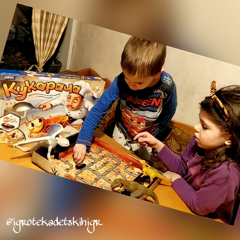 🎲 Вечером поиграли с младшим в "Кукарачу" от #Ravensburger, спасибо за отличную идею играть в игру по кооперативным #хоумрулам. В трёх местах расположились у нас динозаврики и ждут не дождутся, когда к ним на обед пожалует наш маленький тараканчик. А мы все вместе, бросая кубик, должны помешать этому случиться и привести усатого полакомиться вкусной шоколадкой. И как не странно, очень часто мы проигрываем. Дети в этой игре всегда визжат от восторга.