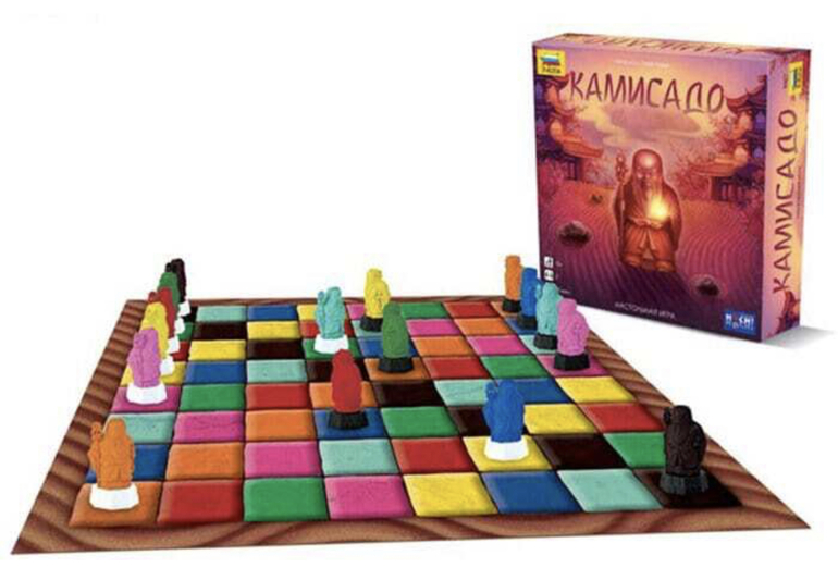 Игра с ярким разноцветным полем в клеточку, говорят похожа на шашки и шахматы. Есть где подумать.