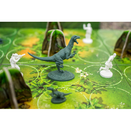 Очень красивая игра с полем и миниатюрами - фигурой динозавра и ученых. Один из игроков играет за Раптора, другой за ученых.