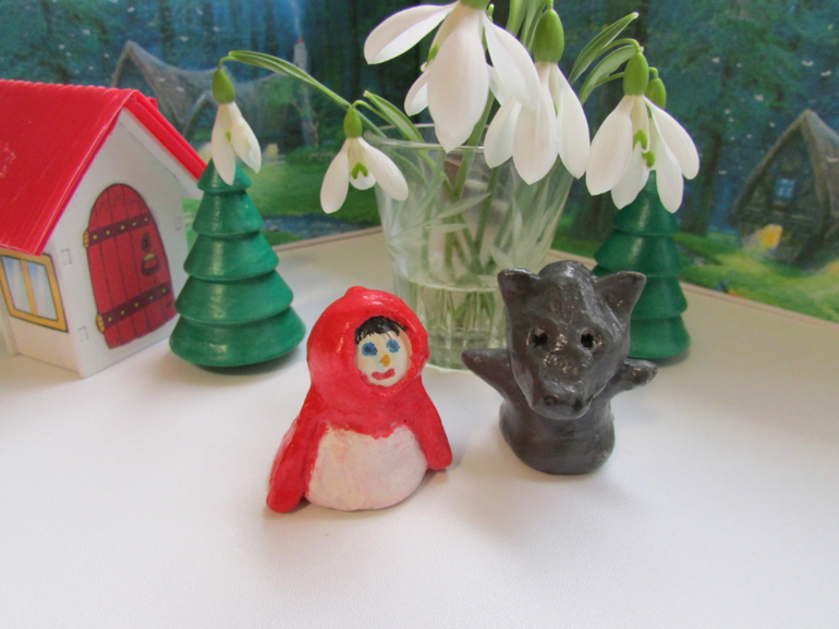 Шапочка и Волк -мукосольки на шариках фольги.