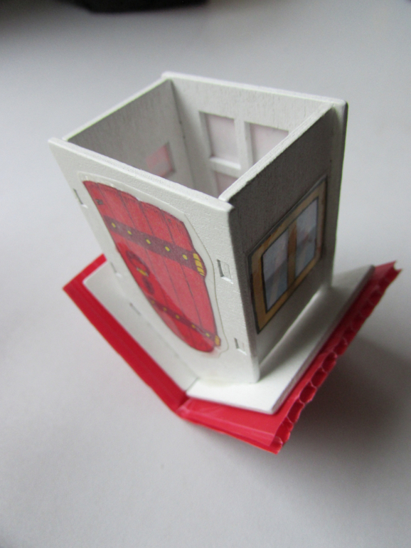 Двери и окошко-распечатка на двухстороннем скотче, сверху "заламинированная" обычным скотчем.