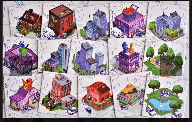 В этой игре Вам нужно будет возводить объекты городской инфраструктуры, выкладывая на поле жетоны. В зависимости от типа постройки, она по разному приносит очки - рядом с домом недурно бы построить парк и магазинчик, чтобы не ходить за макаронами через квартал; офисы лучше строить рядом, чтобы получился деловой центр; а метро лучше всего строить по диагонали - так жителям будет удобнее всего.