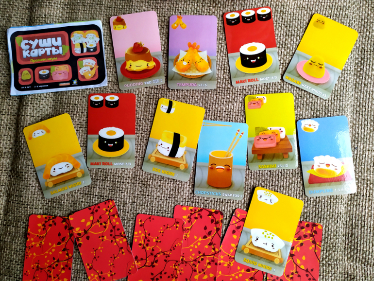 7. Суши карты. Аппетитная игра, не только для любителей суши) 7 чудес на минималках. Карты с каждым ходом передаются соседу. Нужно собрать самые удачные сеты суш для победы.