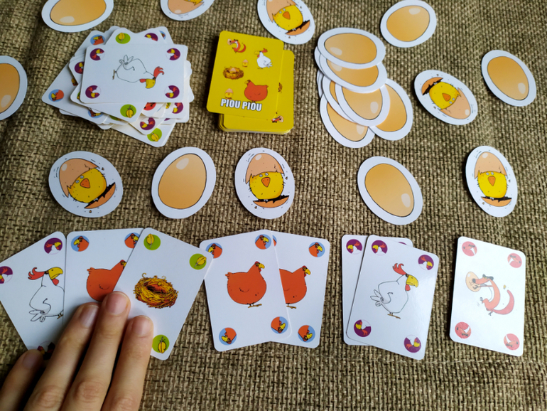6. Чик-чирик. Еще один хит. Веселая, динамичная, азартная. По механике похожа чем-то на Спящих королев. Карты обмениваются, противостоят друг другу. И собирать нужно, но не королев, а цыплят)