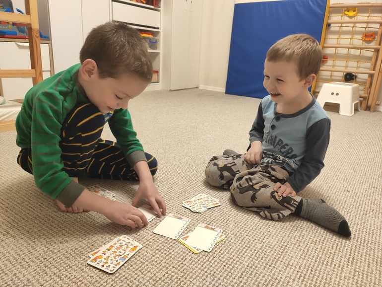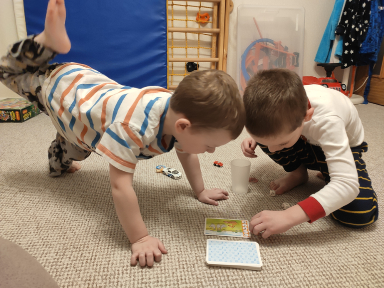 Илья был в саду всего 2 дня, Миша - 4 дня. На выходных не играли, потому что повалил долгожданный снег, дома не сидели.