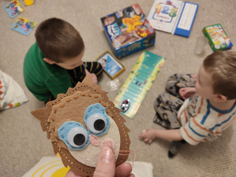 Главным событием недели стало то, что дети заиграли самостоятельно по личной инициативе, мы узнали об этом позже. Тут писала. Для самостоятельной игры дети выбрали "Сырные бега" и "Быстрее, маленькие рыбки". Была отобрана еще "Корова и компания", но до нее не дошли, потому что придумали себе новую игру "Рыбные бега" и веселились. А я в это время шила им брелоки из детского набора творчества.