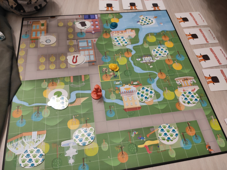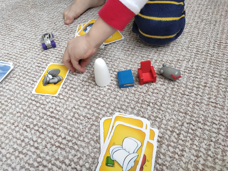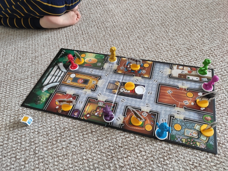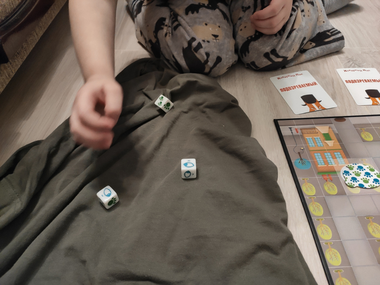 В "Клуэдо" хорошо ориентируется, уже полностью сам подготавливает поле для игры, очень ему нравится быть детективом, начал выигрывать.