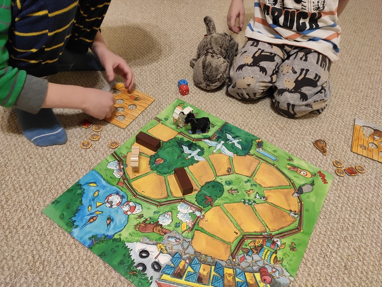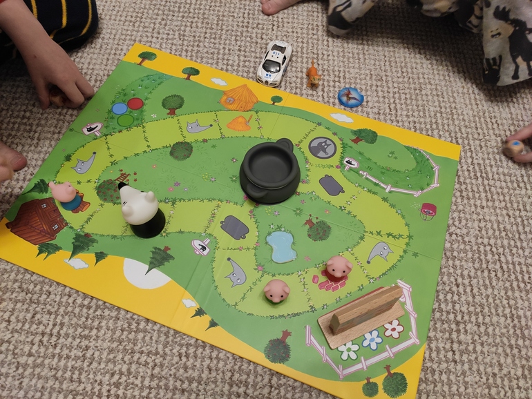 "Woolfy" от Djeco у нас всегда хорошо идет. Среднему пока подсказываем выгодные ходы, а старший просчитывает выигрышные позиции сам.