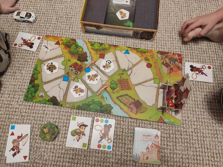 "Мою первую осаду замка" средний сын как раскусил, так играть стало веселее, и теперь мы с радостью достаем эту коробочку, щелкаем игру как семечки. Интересно, что игра для юного возраста, но без кубика, а только картами играешь, другой такой аналогичной у нас нет.