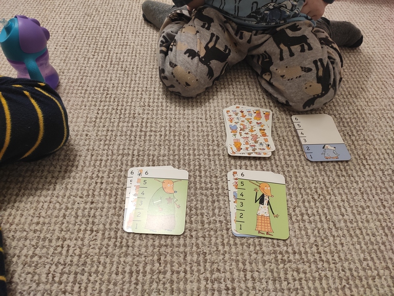 Отдельно со старшим сыграли в "Этажики", он по-прежнему считает ее самой любой игрой, а мне нравится видеть, что с каждой партией он все быстрее и быстрее считает в уме.