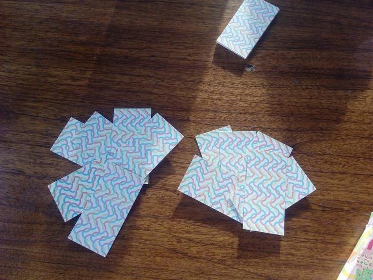 Я раздаю взакрытую. Дальше мы решаем, кто будет ходить первым. Обычно мы объявляем, что первым будет тот, у кого на карточках больше, допустим жёлтого цвета. Это любимый цвет дочки, но игрок у меня сегодня другой, поэтому я назвала свой любимый синий. И право первого хода у моего "помощника".