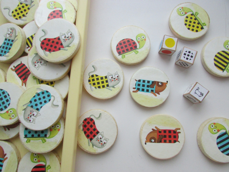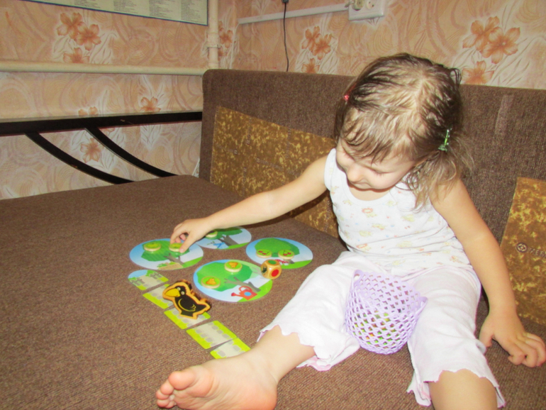 Правда Анюте пока проще с двумя кубиками играть, и я убираю часть фишек.
