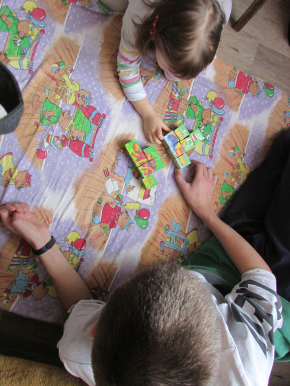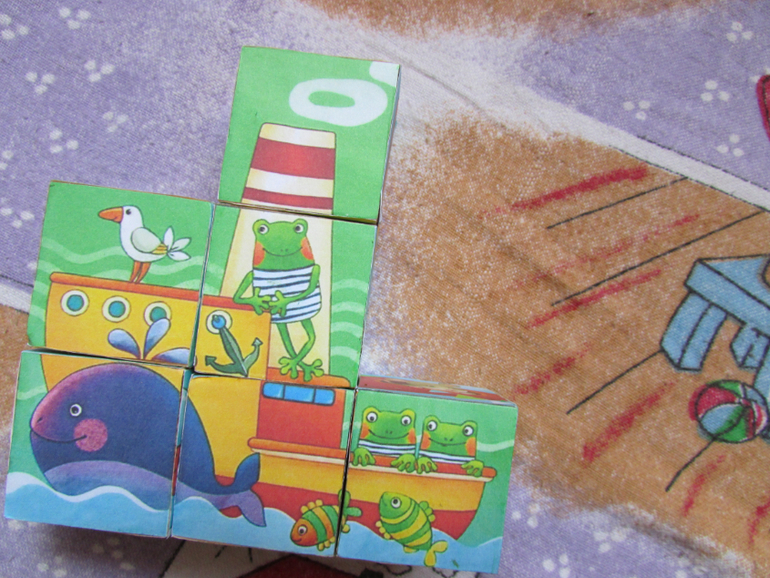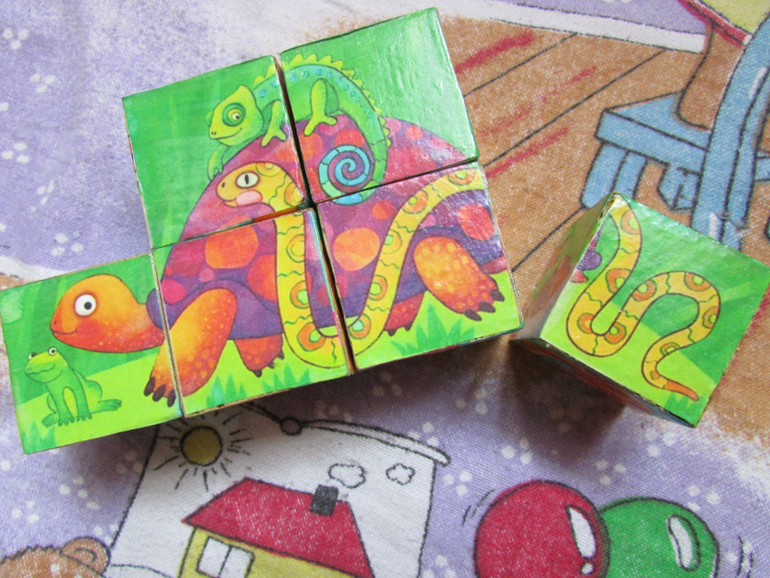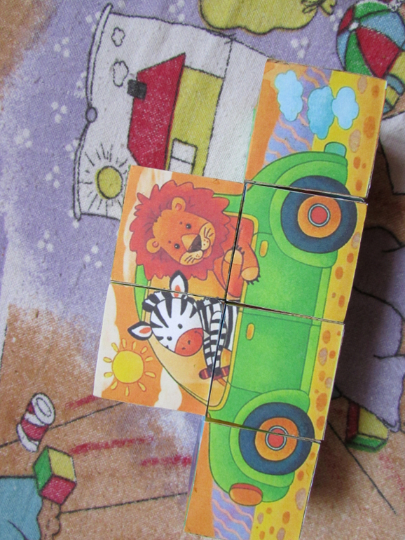 тут же и сделали мы эти кубики Очень мне они нравятся тем, что складываются в картинку непривычной формы, ребёнку надо подумать и присмотреться повнимательней)
