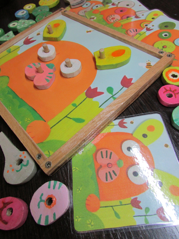 Деревянную основу со штырками и детальки делал муж. Я на основу заламинировала PnP распечатку, муж прикрепил её рамочкой и шурупами. Я сверху покрыла края лаком. Детали красила гуашью и тоже покрывала лаком.