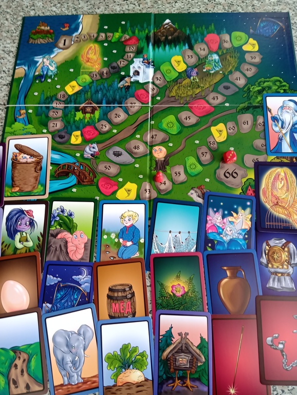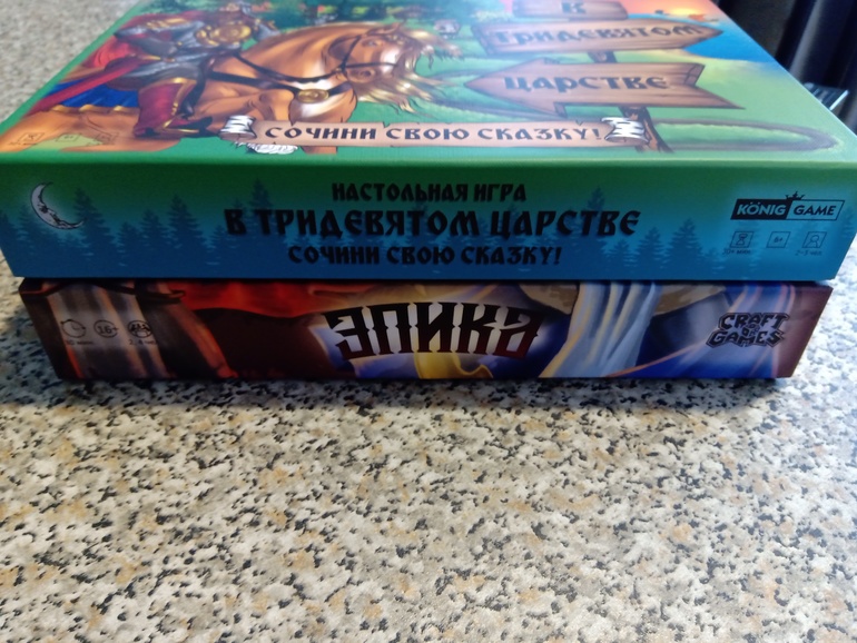 В тридевятом царстве - игра на составление истории путешествия богатыря. Мелькала уже в сообществе. Кинули кубик, вытянули карту, сказали фразу. Ну не люблю я такие игры совсем. Но надо! Покупала как пособие для развития речи и тренировки пересказа, на каждом ходу сказка повторяется игроком с самого начала. Детям понравилось, но восторга нет, да и не ожидалось. Они же мои дети)) Довольна на все 100%. 216 карточек, качественные компоненты и все это за 300р.