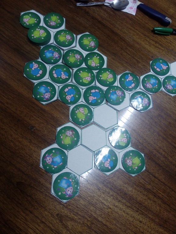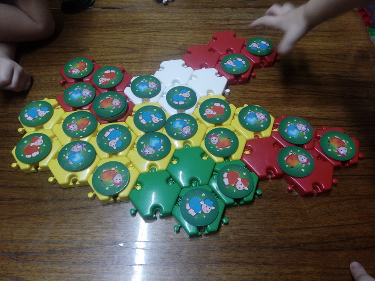 А на прошлой неделе мы поиграли в игру Боевые овцы, сначала была пробная партия на мозаике.