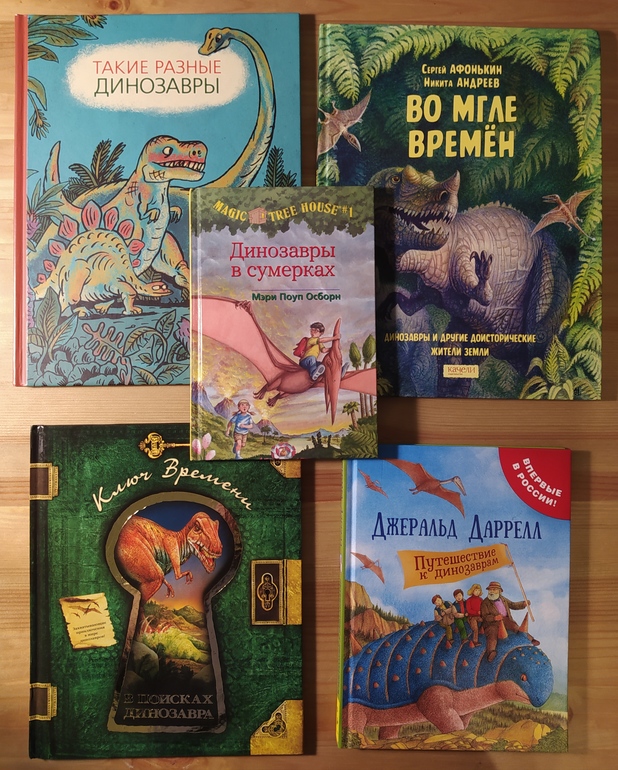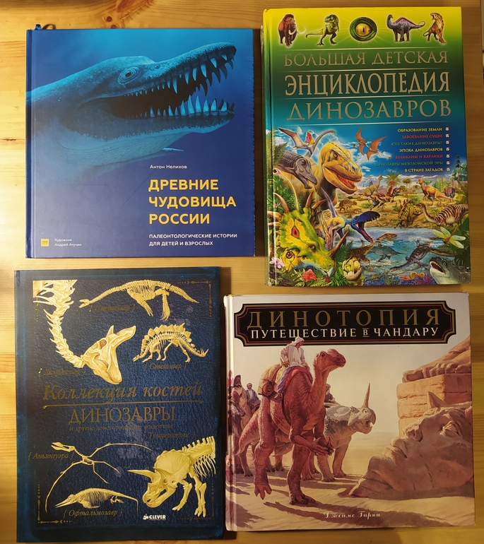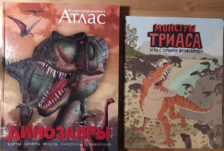 Ксения, а покажите, пожалуйста, что хорошего у вас есть на тему динозавров. Из книг, игр, чего угодно. Я племяннику дарила игру "Спасите дино" и книгу "Снегозавр" Флетчера. Книга сложная, не на пять лет, но динозавры - очень сильный стимул, прочёл сам, попросил продолжение.