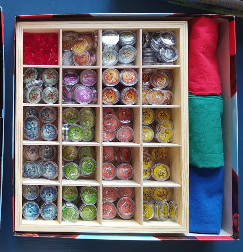 Органайзер для Шарлатанов сильно облегчил и ускорил подготовку к игре. Хранится в коробке дополнения.