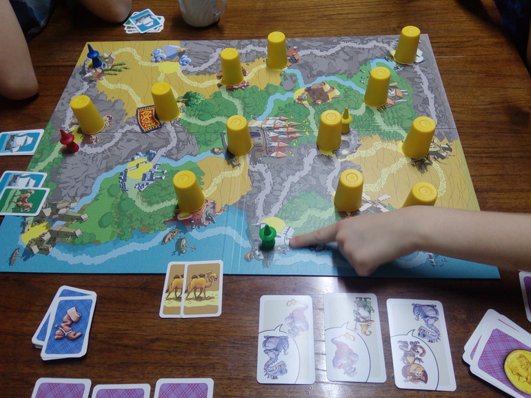 Приятная игра на память. Не так то легко запомнить, кто находится по этими колпачками, и как добраться до нужного героя. Я вообще ничего не могла запомнить, но мне просто везло, я открывала наугад, а оказывалась у нужного персонажа. Кстати, автор игры Марко Тойбнер, он же соавтор игры Дети Каркассона. Тут дорожки, там дорожки, тут бежать надо и там, интересное открытие для меня, я мало знаю авторов.