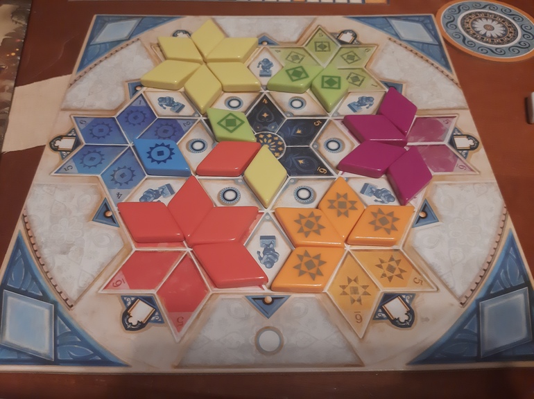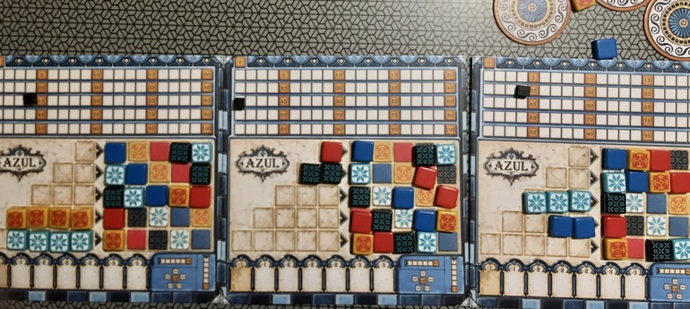 И ещё играли с сыном в Азул. Тоже втроём.
