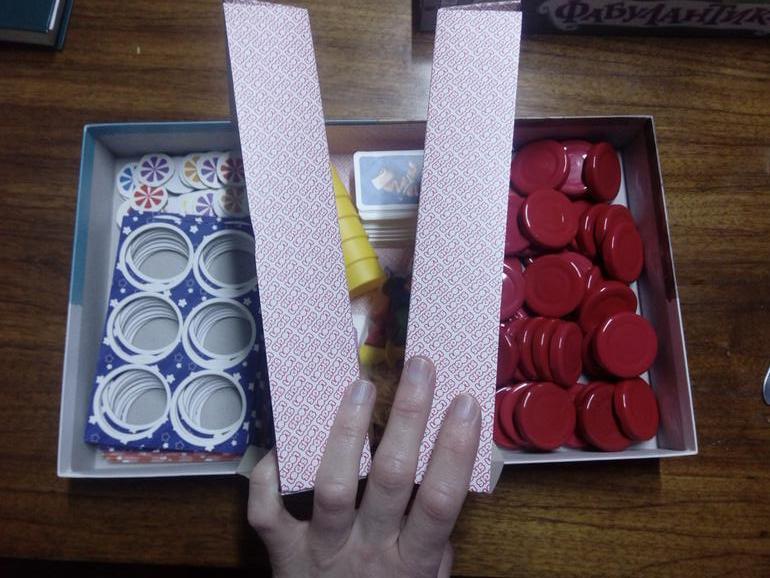 Обратная сторона карты Фабулантики и внутреннее пространство коробки, наконец то решило проблему с моей самоделкой. Там идеально всё разместилось.