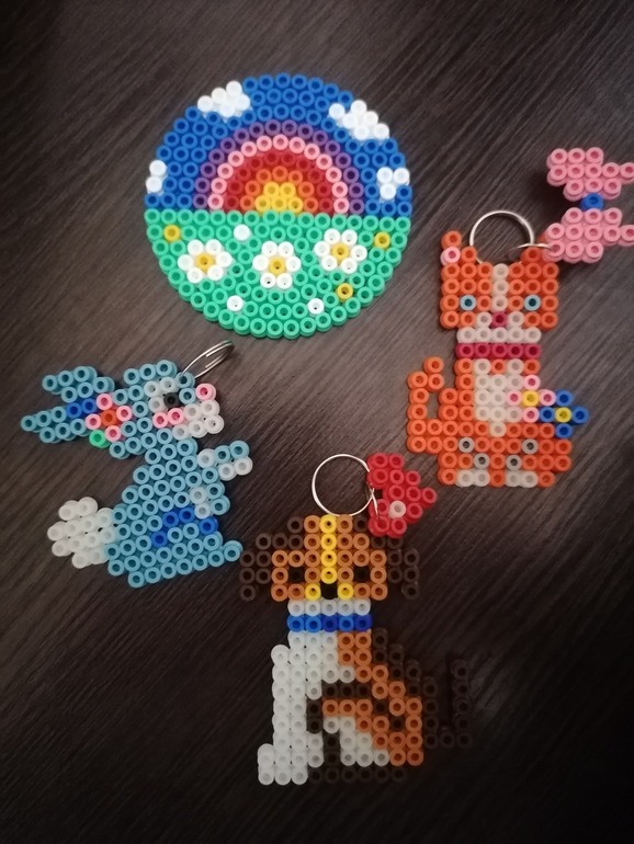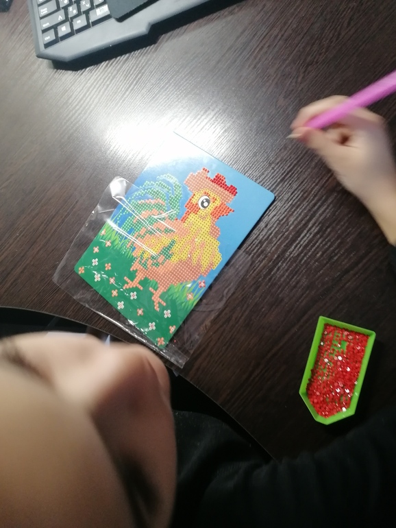 Наделал такие брелочки и своей учительнице по подготовке радужную подставку для кружки. Что меня очень порадовало-сам все высчитывал. Купила в фп алмазную мозаику для подарка бабушке. Удивляюсь как он сидит и всю эту мелкотню приклеивает, конечно делает частями, но получается красиво