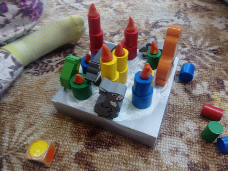 Всё это перемежалось партиями в Домик (по желанию дочки), в который мы играем то каждый день, то через день, в общем так часто, что я уже перестала это фотографировать, Карманное сафари (ещё одна дочкина игра-фаворит) и Паклю-рваклю (прекрасная быстрая игра).