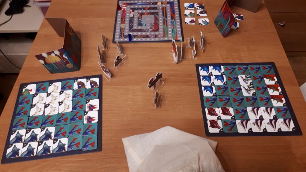 Ещё появился у нас Илос.Затерянный архипелаг от Эврикуса, яркая семейная игра с несложными правилами, где нужно колонизировать острова и защищаться от пиратов, но пока была только пара партий, Кверкл её затмил сейчас, но все впереди))