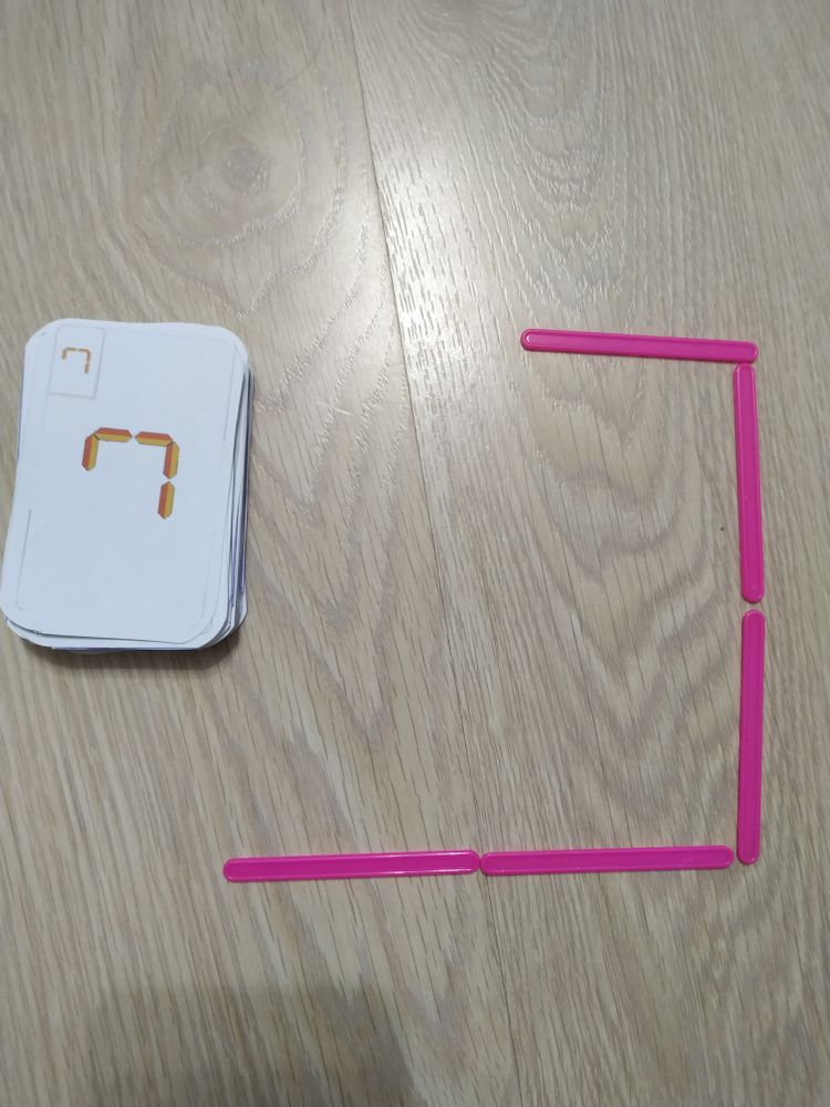 Играла с дочкой в игру, название, которой забыла. Нужно переложить одну палочку так, чтобы собрать фигуру со своей карты. Очень хорошая игра, важно помнить, что все карты на руках нужно и можно поворачивать, тогда обязательно заметишь, какую палочку нужно переложить. Однажды попали в тупик, у нас осталось по одной карте, я переложила палочку, но дочь тут же переложила еë обратно. Надо бы почитать что по правилам делать. Но случай такой был единственный.