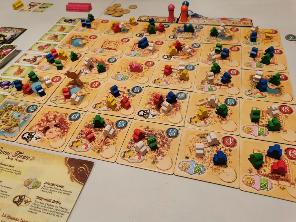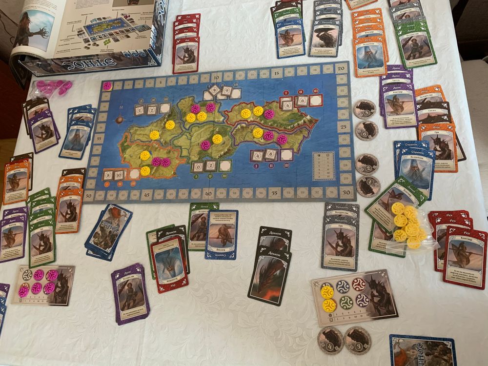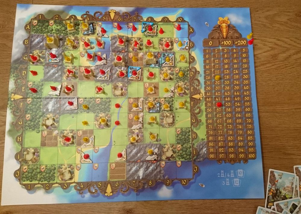Была партия в моё любимое Королевство кроликов, сын предложил сыграть дополнительный раунд, в котором собрал кучу редких ресурсов, благодаря чему меня и обыграл, свитки меня не спасли.