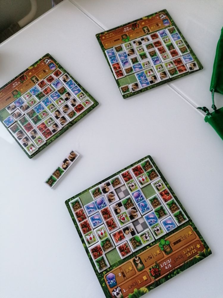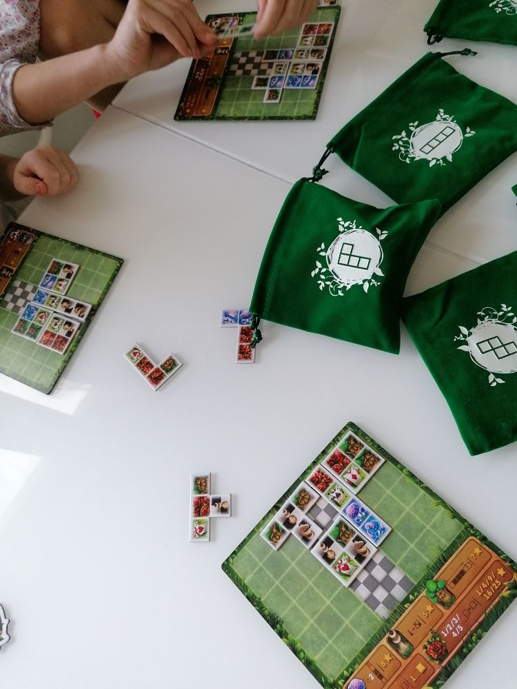 На Сад Алисы смотрю давно, хочется тетриса, поняла что не хочу с Дашей играть в Пэчворк, а сад нравится внешне. В жизни он ещё лучше, смотрю на эту зелёную коробочку и глаз радуется, сразу настроение такое весеннее, даже не убираю игру с кухни)) Сам процесс тоже интересен, идёт постоянный выбор тайлов, какой выгоднее взять по форме, а другой выгоднее по рисунками, ведь за каждые комбинации мы получаем победные очки в конце игры и штрафы за незаполненное пространство. В общем увлекает и глаз радует!