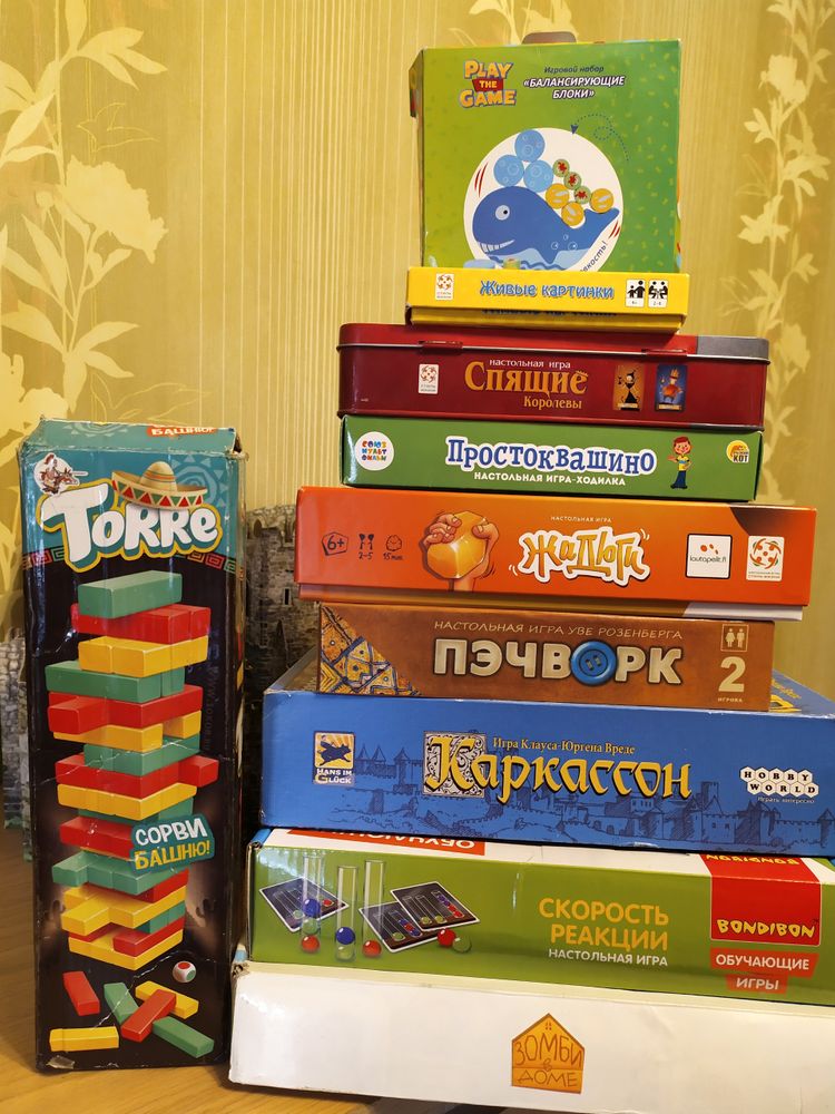 Во такая стопочка вышла. Забыла Диксит и малышковые добавить. Пока младший болел, а старший по гостям ходил переиграли в Каркушу, Голодных птичек, Балансир, Рыбалку, Лото. Только до Синего слоника не добрались.
