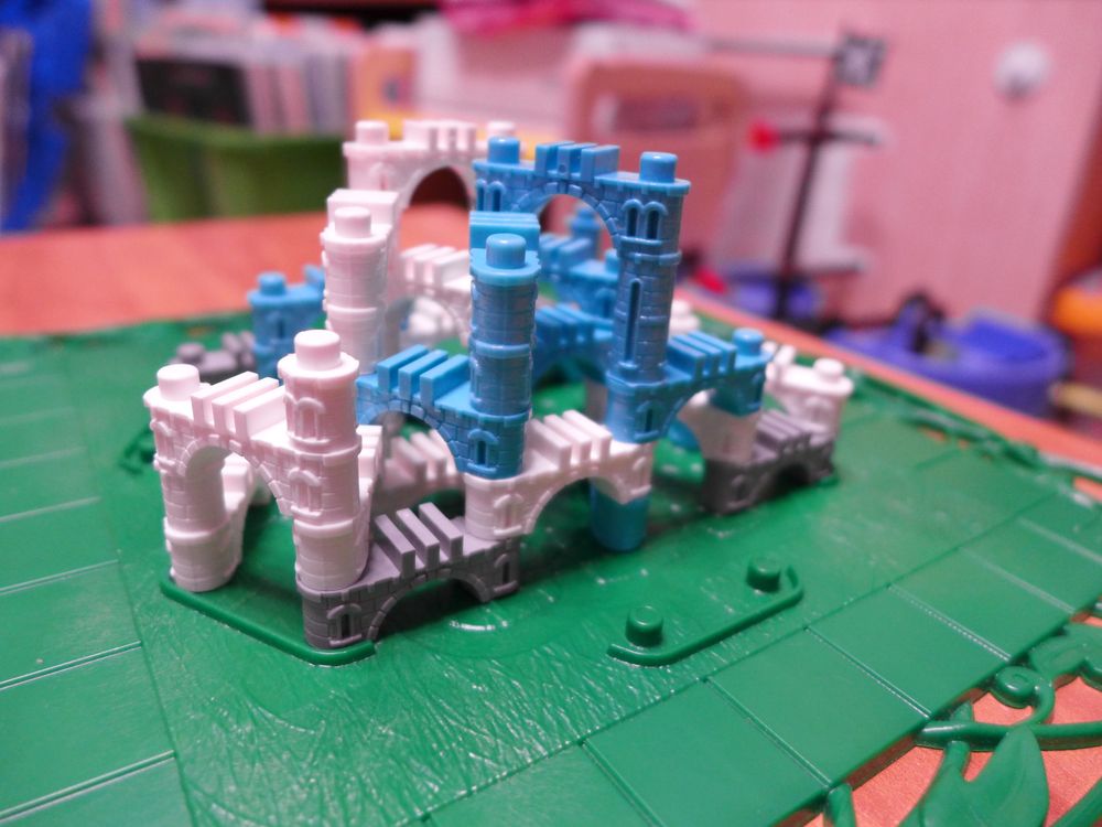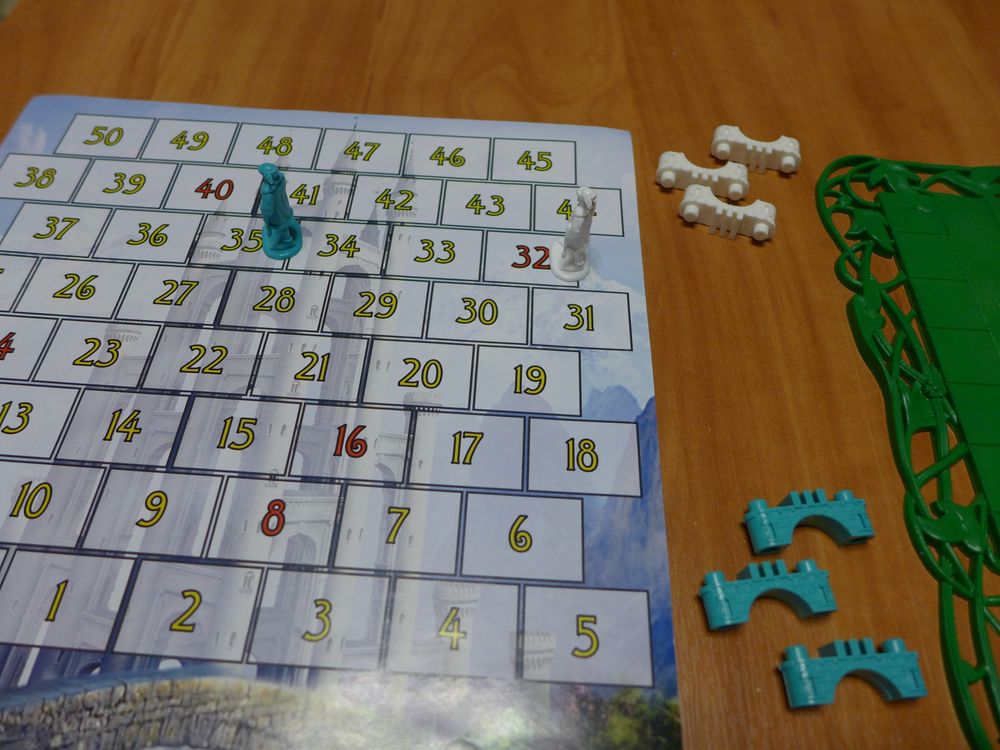 Если играете по сценарию - не забывайте плюсовать себе бонусные очки (мы забыли). Ещё дочка огорчилась, что мы не включили правило Лестницы, т.е. встав на красные очки (8, 16, 24, 32 или 40) - игрок может создать лестницу и использовать её в строительстве. Как показал сегодняшний замок - правило хорошее, можно и с ним попробовать. Не включала я его для того, чтобы и без этого отточить до автоматизма подсчёт очков. Зная, как «умело» я оперирую правилами, делаю большую ставку на то, что мы играем с косяками.