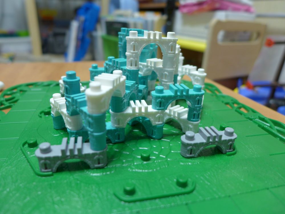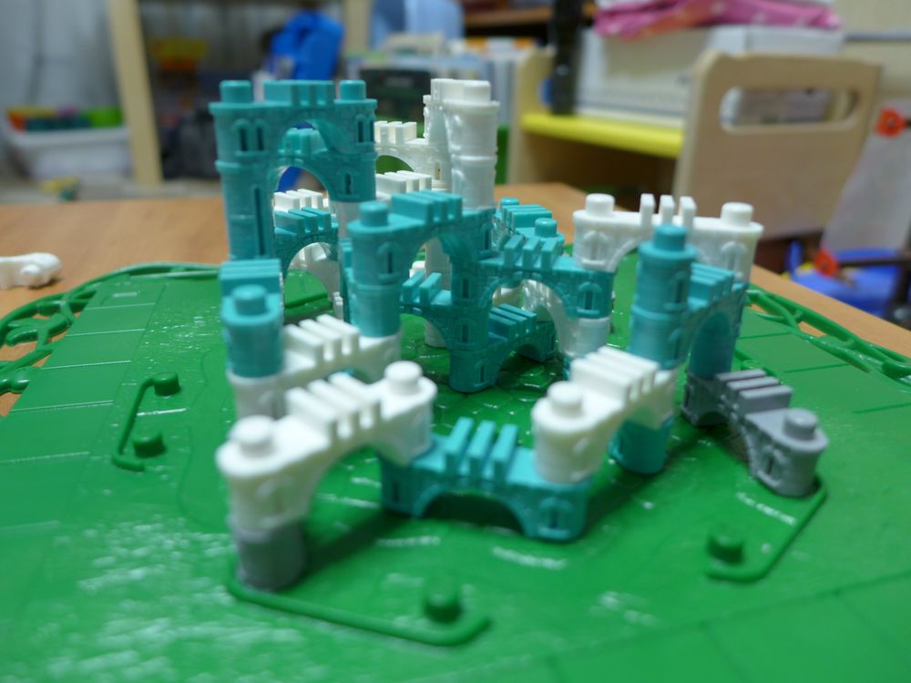 Что из себя представляет игра. Это пластиковое поле со штырьками, откуда и благодаря коим мы - архитекторы, и будем возводить замок для эльфов.