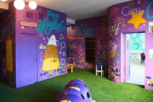 О, как интересно, но наверное сложно. Хотя есть вариант подобрать детей по возрасту, чтобы они тоже играли в это время, например. Тогда идеально подойдут залы для игротек.