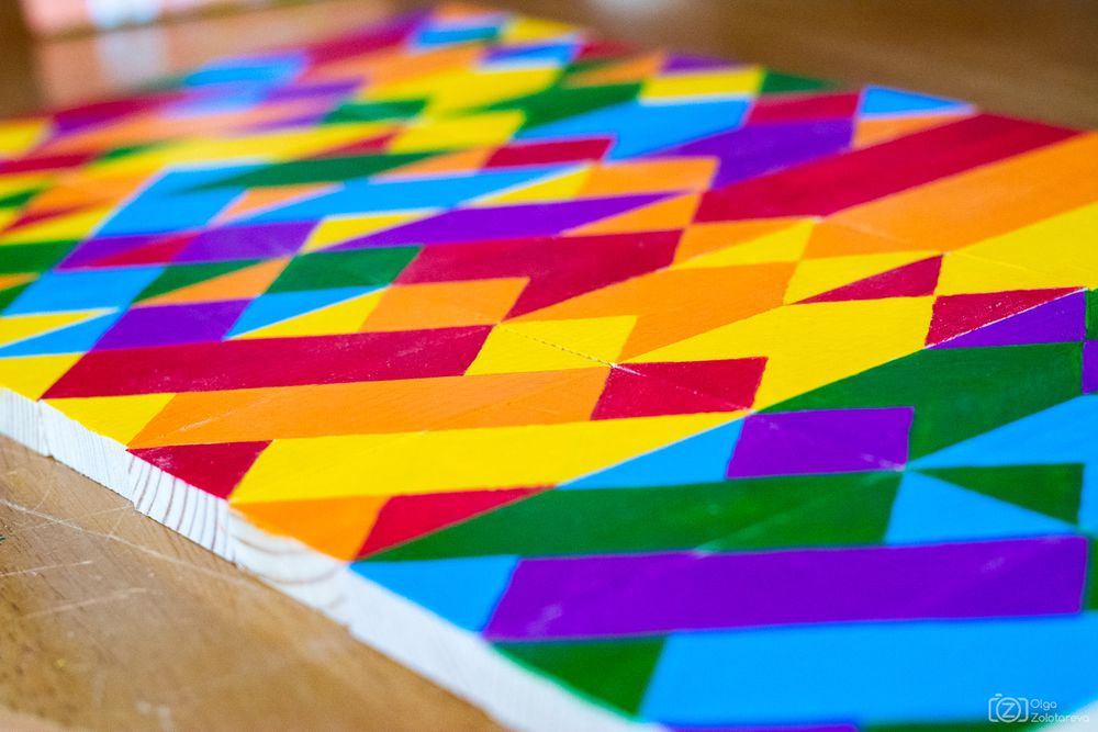 В качестве основы взяла недорогое домино Анданте (две упаковки) на Майшоп, размер пластин здесь 7*3,5: даже больше оригинала. Потом разметила и покрасила акрилом. Не шлифовала и не грунтовала, а зря: было бы куда аккуратней, наверное. Изначально плашки домино казались мне весьма неплохо обработанными, но в процессе покраски "вылезли" все мелкие дефекты и лишняя фактура. Но и в таком виде для меня эти цветные дощечки - услада для глаз.