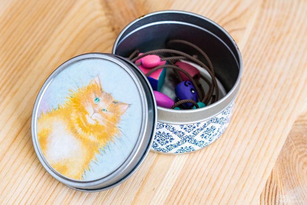 Кот и мыши, дорожная, так скажем версия. Мыши - деревянные продолговатые бусины со шнурками. Баночку для хранения и собственно игры взяла в Фикс-прайс: в ней была свечка, которую я выковыряла.