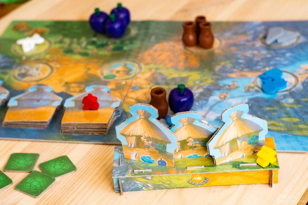 Поле складное из перепленого картона, из него же - тайлы, а вот хижины и подставки я решила сделать и микрогофрокартона, оценив фронт работ по вырезанию. И правильно))