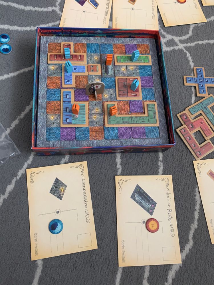 Игра не сложная, но ребёнку пока не очень просто просчитать все оптимально, даже у меня поначалу не складывалась ясная картинка действий). Это мы ещё не подстраивали гадости друг другу по первости 😂. Отличный тренажёр пространственного мышления и планирования! Но к реиграбильности вопросы, несмотря на большое количество карт. В любом случае для своей цены очень неплохое наполнение:карты красивые, деревяшек много, органайзер в комплекте. Люблю Гагу за такое отношение к своим покупателям.