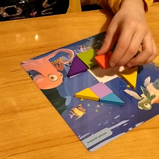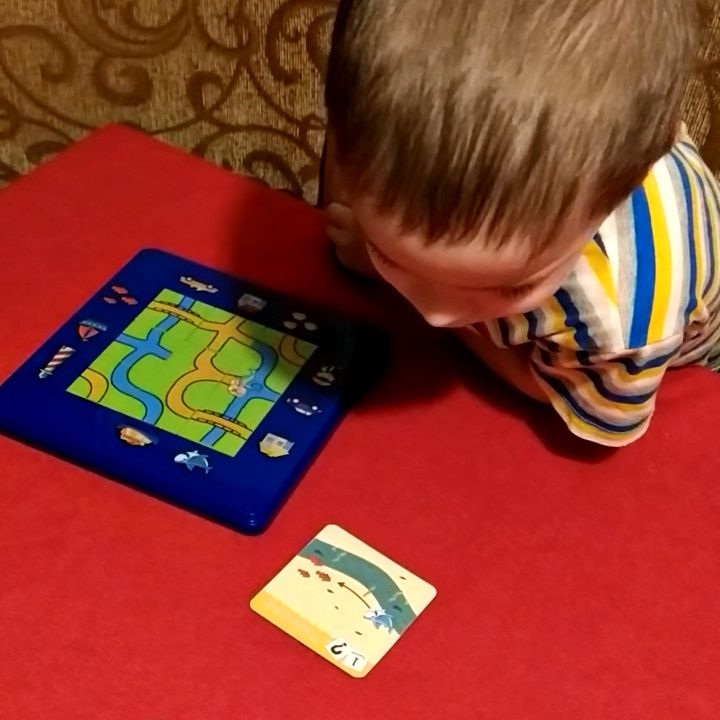 В нашем варианте есть и вода и обычные тропинки. Акула не прыгает по тропинкам, а люди не ходят по воде. Дети пока немного подзависли на первых заданиях. Игра для них совсем непростая.