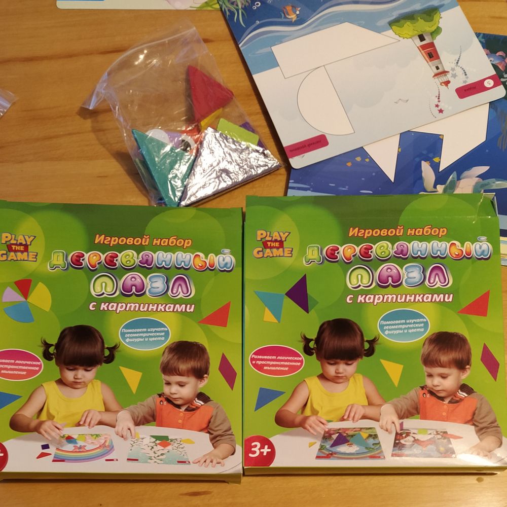 🎲 "Деревянный пазл с картинками" покупала детям ещё в прошлый раз за 149р. В набор входят 34 задания и 14 деревянных элементов.