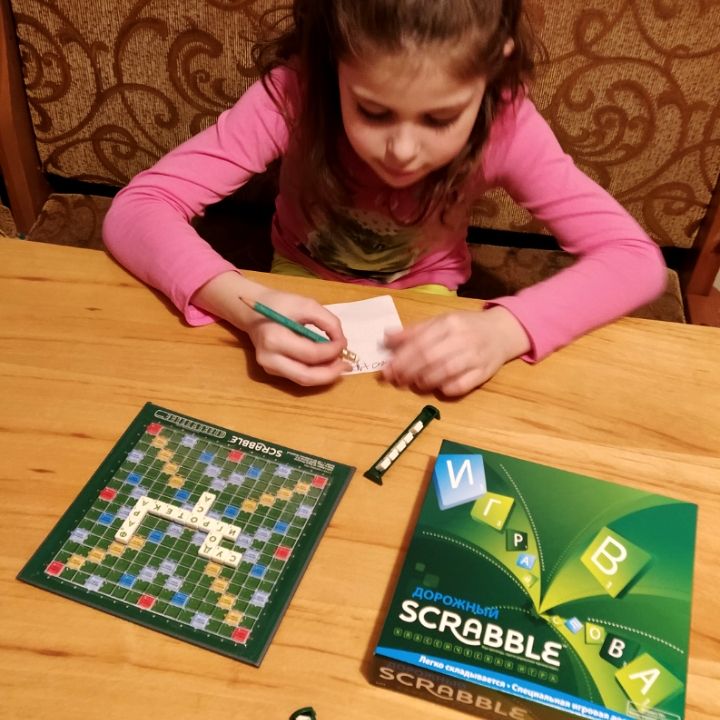 🎲 А ещё сели с дочкой поиграть в дорожную версию игры "SCRABBLE", которую я недавно купила в #Фамилии за 299р.
