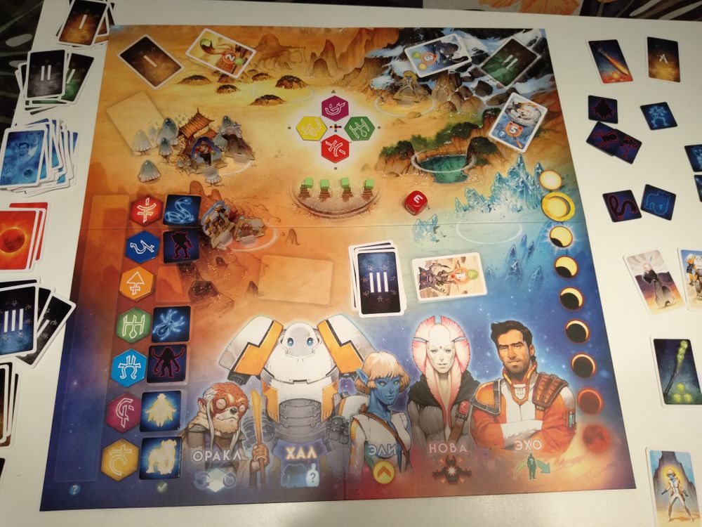 Есть ещё некоторые нюансы, но не буду вас перегружать ими. По уровню сложности игра сопоставима с Запретной пустыней. Очень интересный кооператив! Рекомендую от всей души! Компоненты очень качественные, поле под лен.