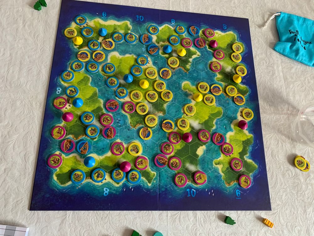Мы сыграли 3 партии и вдвоём и втроём с мужем. Почерк мастера здесь хорошо чувствуется: предельно простые и быстрые действия, каждое из которых так сильно влияют на результат. В короткой партии есть место и контролю территорий, и сбору сетов, и взаимодействию между игроками. Очень неплохая игра для любителей этого жанра.